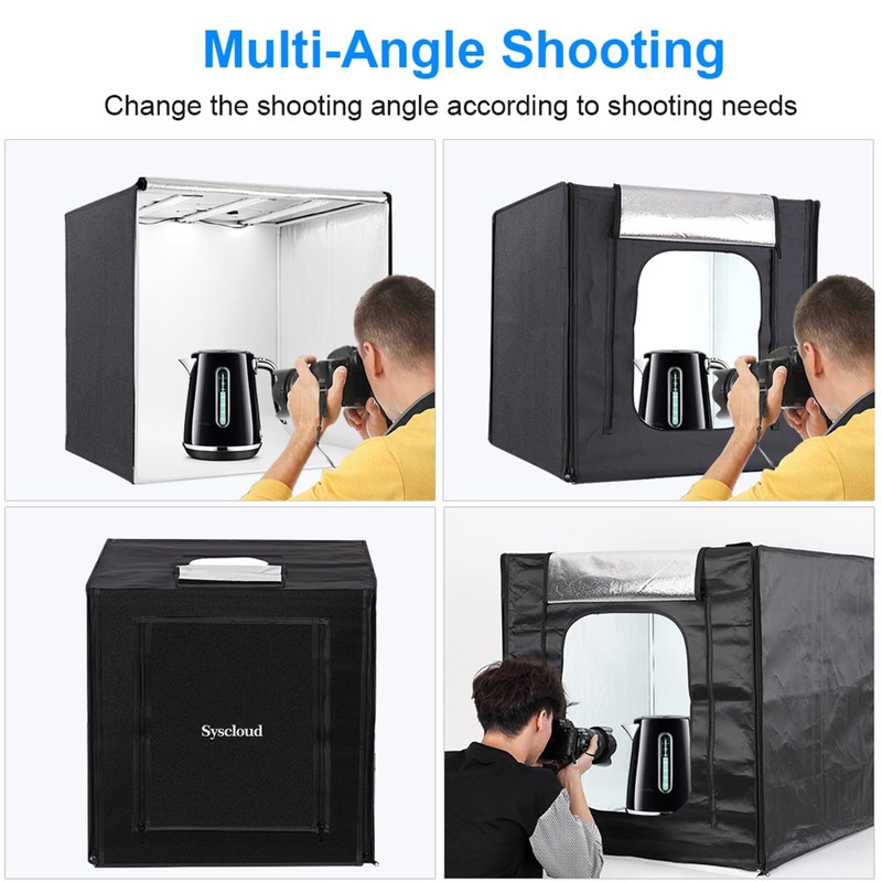 - [Versatile Multi-Angle Shooting for Creative Flexibility] This photo studio light box is designed with multiple openings, giving photographers flexibility to capture images from various angles, whether through the front or top. This mini photo booth setup is especially valuable for capturing detailed shots of small items like jewelry, cosmetics, or electronics, allowing you to showcase products with precision from every perspective.