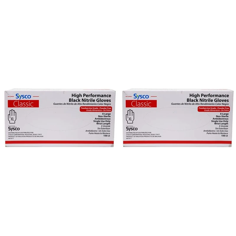- Sysco Classic Black Nitrile Extra Large Gloves, Box of 100