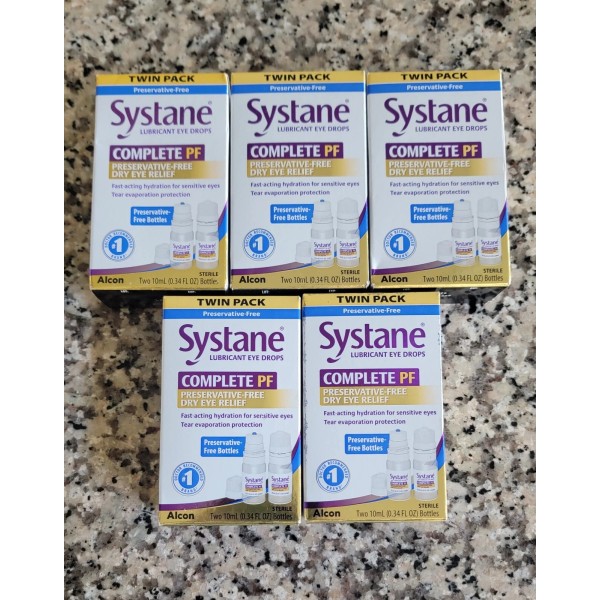 5 Boxes Of Twin Packs Systane Complete PF Lubricant Eye Drops Preservative Free Dry Eye Relief. Fast Acting Hydration For Sensitive Eyes. Tears Evaporation Protection. Expires 01/2026 Onwards.