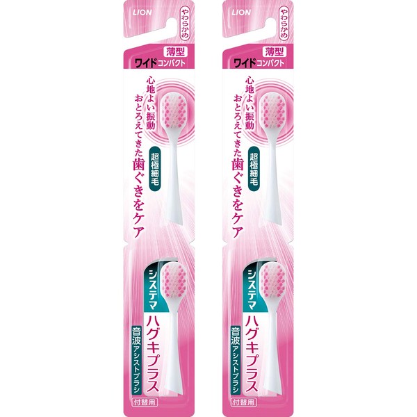 Systema Haguki Plus Sonic Assist Brush (Electric) Replacement Brush, Soft, Pink, Set of 2 x 2
