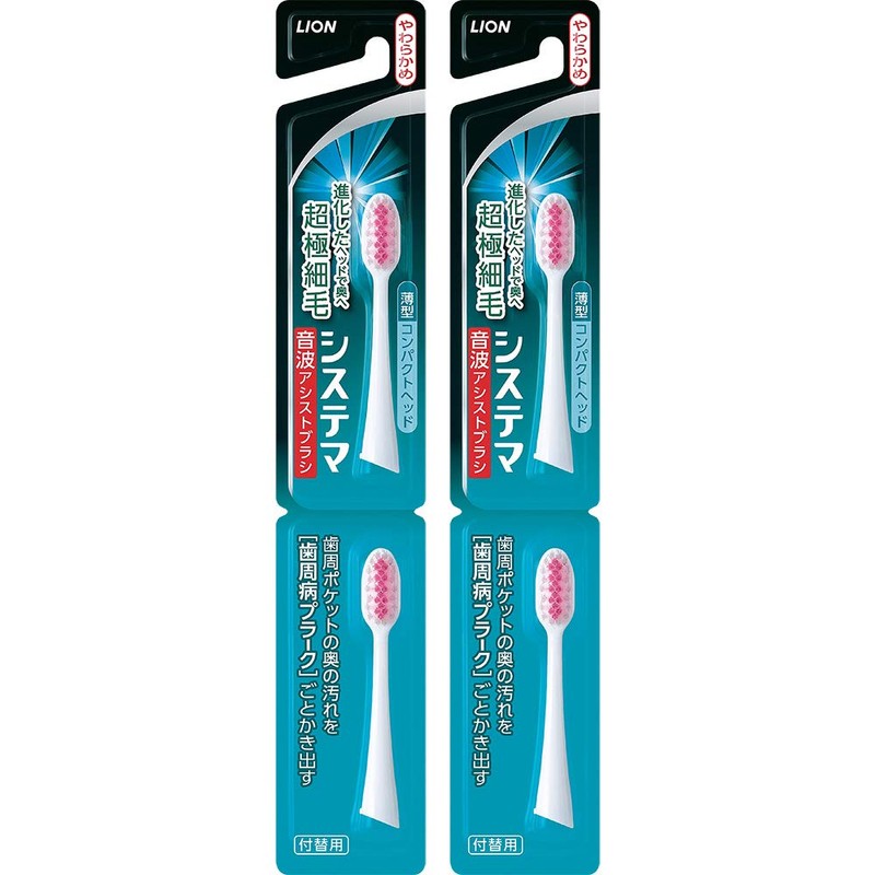 Systema Sonic Assist Brush (Electric) Replacement Brush, Soft, Pink, 2 Pieces x 2 Pieces