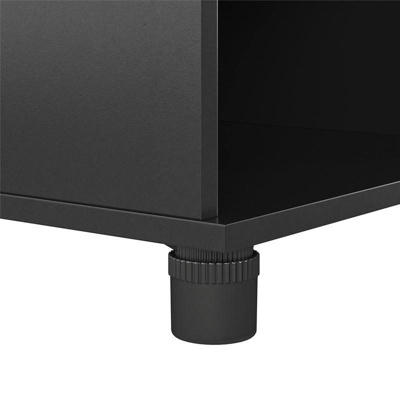 - Made of laminated particleboard with a sleek black finish for a look that's both attractive and affordable