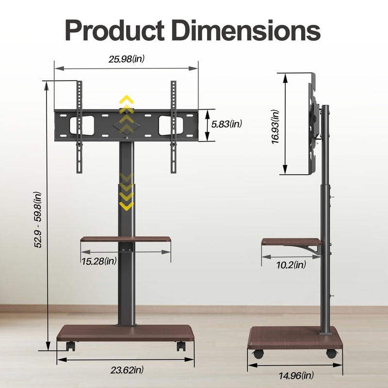 - Height Adjustment & Swivel± 25°: Thanks to the height adjustable pole and TV bracket of this TV floor stand you can adjust the height of your TV within the range of 52.95 to 59.8 inches. Swivel your TV screen ± 25° to ensure that the TV is in the great viewing position