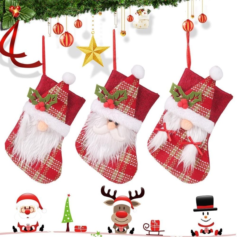 SYTTNUM Christmas Stocking, Christmas Stockings Set, Christmas Socks Candy Gift Bag, Christmas Decoration for Fireplace, Wall, Stairs, Christmas Tree