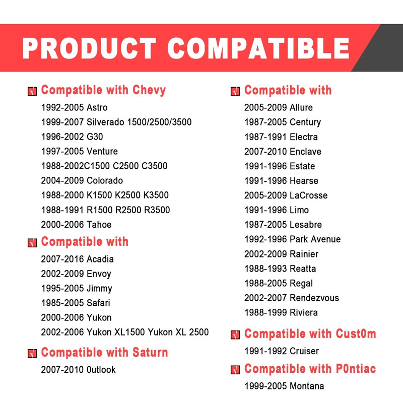 - Compatibility--Compatible with CadlIIac: 99-06 Escalade, 11-15 CTS. Compatible with GiMC: 99-06 Sierra 1500, 07 Sierra 1500 Classic, 01-03 Sierra 1500 HD etc. Please kindly check the detail models in the product description below to confirm the compatibility!