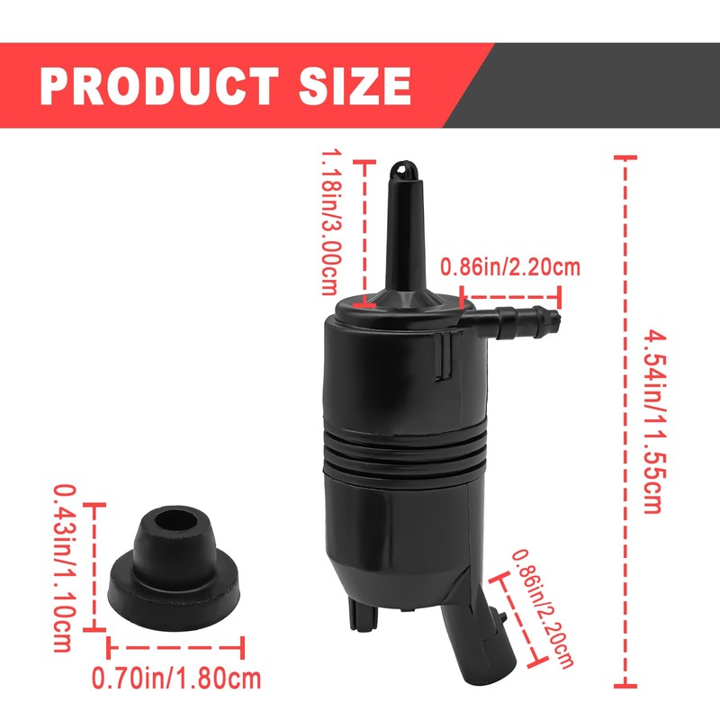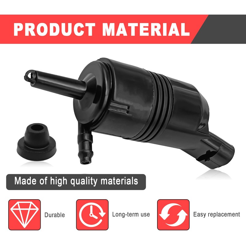- Package Include--You will get 1 pcs front windshield washer pump. Made of high-quality materials, manufactured through strict quality control manufacturing and testing procedures.