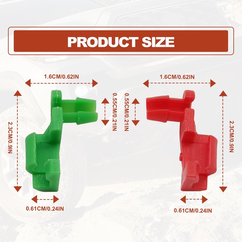 • Package Includes: 5pcs right green and 5pc left red rod clips, 5 Pairs Left & Right of Tailgate Handle Rod Clip Sets to fix your tailgate latch
