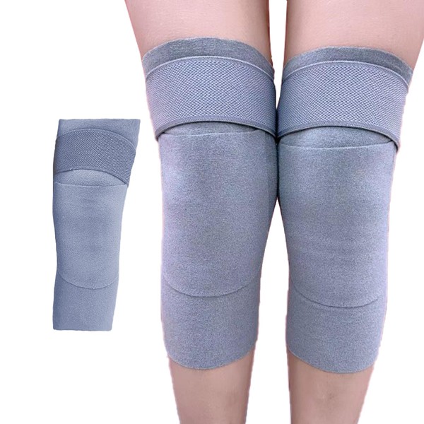 Syumi Warm Knee Pads with Pocket for Hot Pack, Velvet Thermal Knee Brace with Non-Slip Straps Joint Support & Cold Weather-Men & Women (One Pair,Grey)