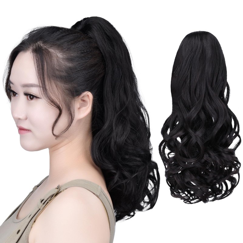 SYXLCYGG Black Ponytail Clip Claw Pony tail 16" Wavy 4.5 OZ Synthetic Hair Fake Hair piece Women Yaki Fluffy Like Real