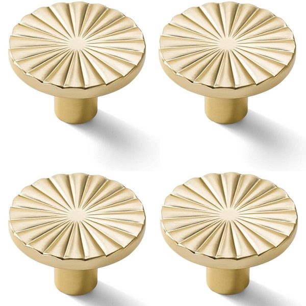 SYZOW 4 Pieces Brass Cabinet Knobs, Round Cabinet Knobs, Golden Brass Drawer Knobs for Kitchen Cabinets, Wardrobe (K Gold)
