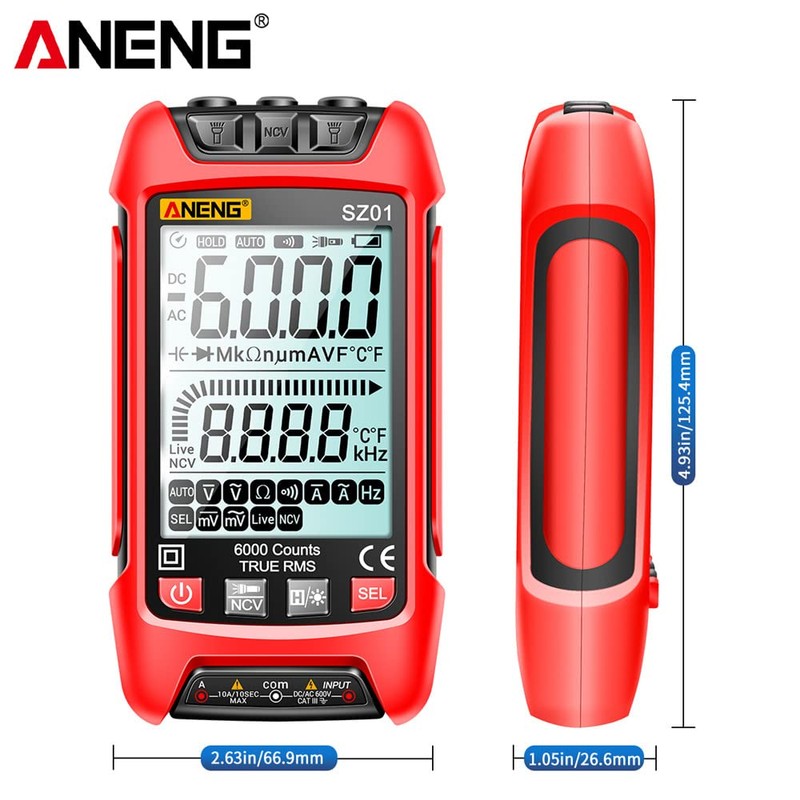 SZ01 Smart Digital Multimeter 6000 Counts True RMS Auto Electrical Capacitance Meter DC AC Voltage Current Resistance - Red(no box)