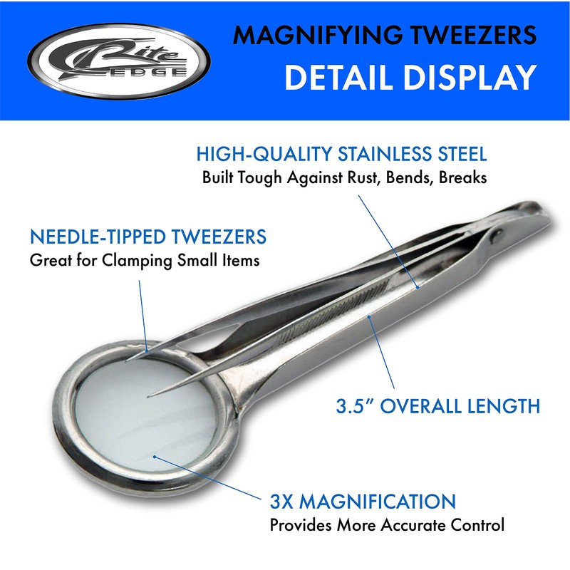 • A powerful 3X magnifying glass and needle-tipped tweezers combine to make this one of the handiest items in the tool box or first aid kit