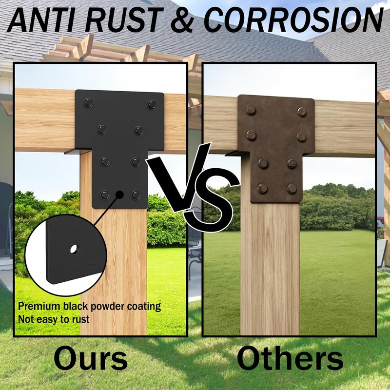 - ✅Wide Application: Our post and beam connectors are used to securely fasten wood posts to beams, providing solid support for the construction of outdoor gazebos, pergolas, patios and porches.