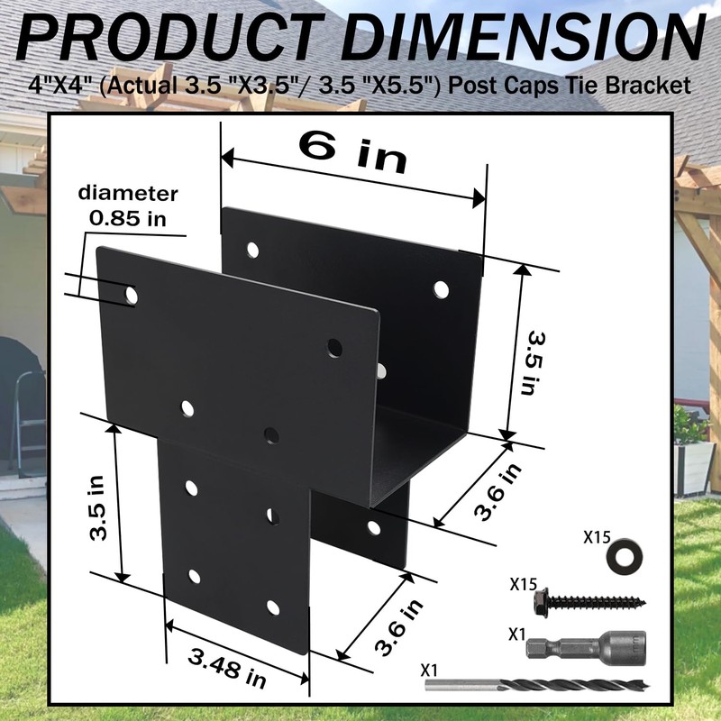 - ✅ High Quality - The post cap tie brackets are made of high quality thick steel, combined with electrostatic painting process, which is waterproof and rustproof, providing a solid and secure connection between wood posts and beams.
