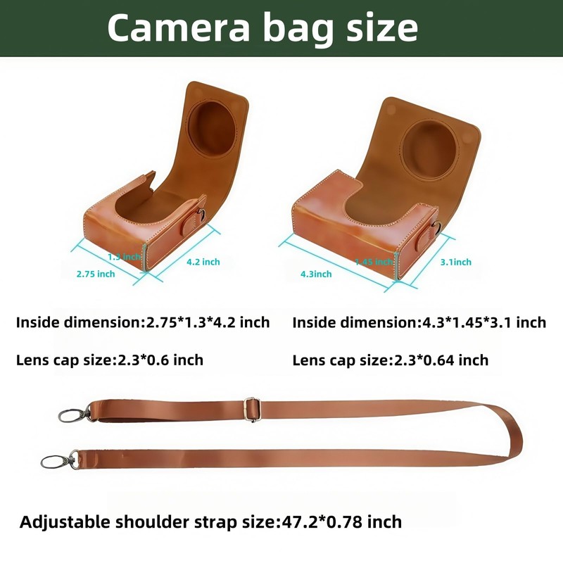 - Size: Camera bag inside dimensions 4*2.75*1.2 inches, lens cap inside dimensions 2.2*0.7 inches.