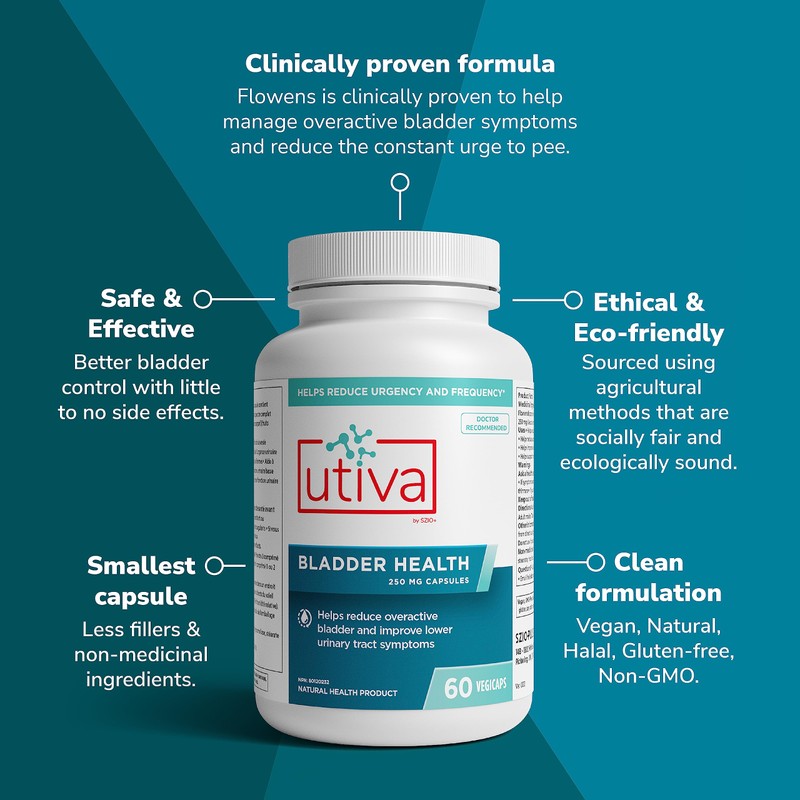 - REDUCES URGE & FREQUENCY: Utiva Bladder Health strengthens urinary function for men and women, and improves mild to moderate overactive bladder (OAB) and lower urinary tract symptoms such as bladder emptying, urinary frequency, and flow