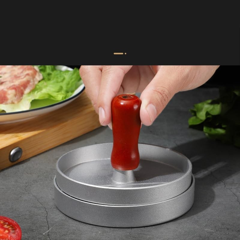 SZJLDS Burger Press, Hamburger Press - Made of Aluminium Alloy with Wooden Handle, Durable and Rustproof, Perfect for Even Burger Patties, Easy to Use and Clean