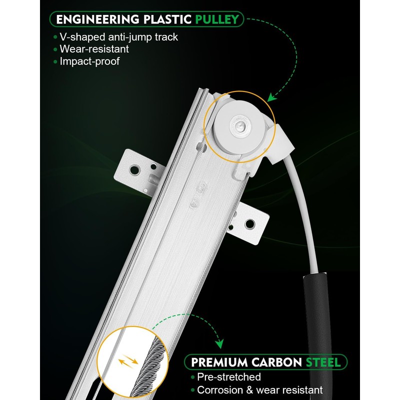 • Heavy-Duty Durability: Cheap regulators fail and when they do, they often take other components with them. Our high-strength, cold forged steel rails and thermal resistant motors are engineered to last, enduring over 95,000 cycles without bending or overheating. Unlike flimsy OEM parts that warp under stress, our system distributes force evenly, preventing premature wear. That means fewer breakdowns, fewer repairs, and long-term savings
