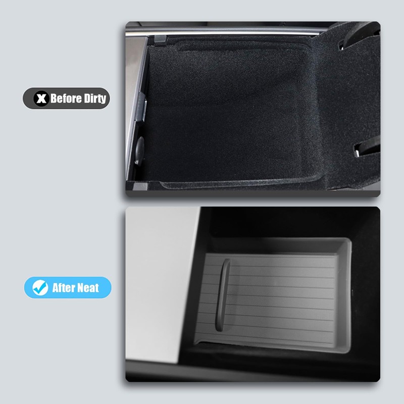 - Customized Design: The Armrest Organiser Tray is a specially designed bottom bracket for the telsa series, which fits perfectly and is hidden in the bottom of the armrest box and is an essential Tesla spare part