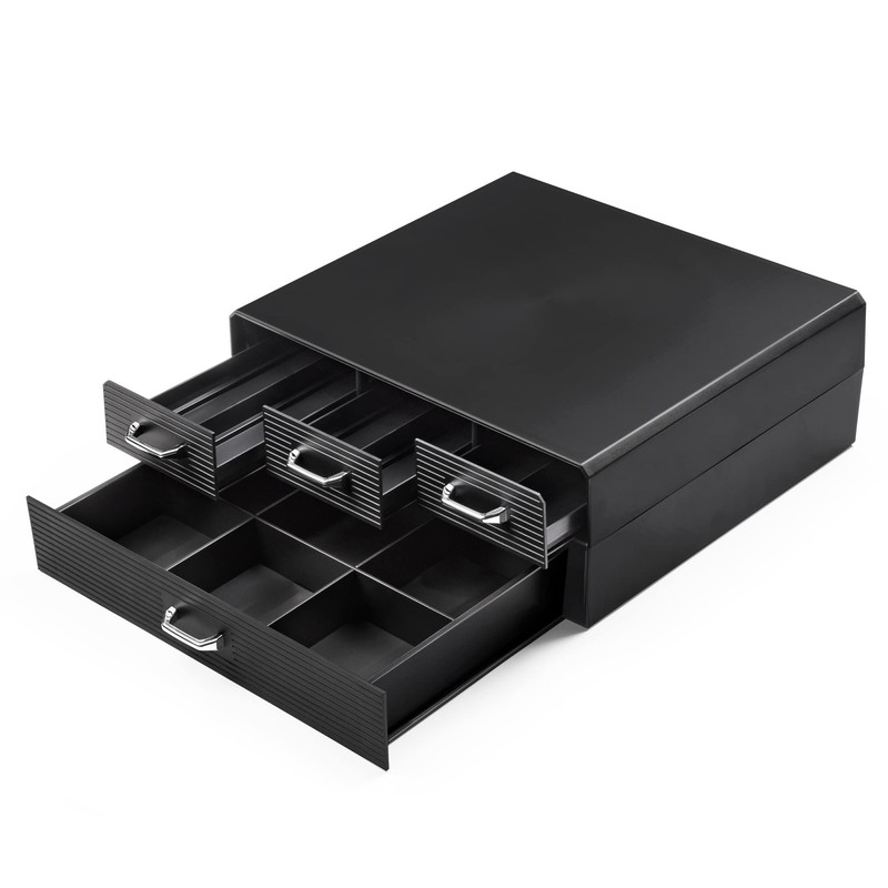 - Sleek Design: Mirror-finish handles; simple black appearance; smooth drawer-pulling even with a coffee machine on it.This black coffee pod organizer is a perfect choice for your modern kitchen.