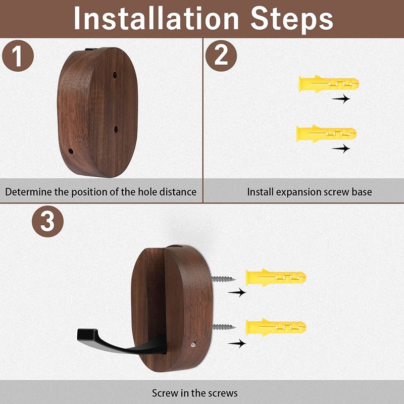 - 🏡Easy Installation ⯈ The wall hooks come with screws and wall anchors. Easy to install in just 4 steps: drill the hole / mount wall anchors / install screws / twist on the wall.