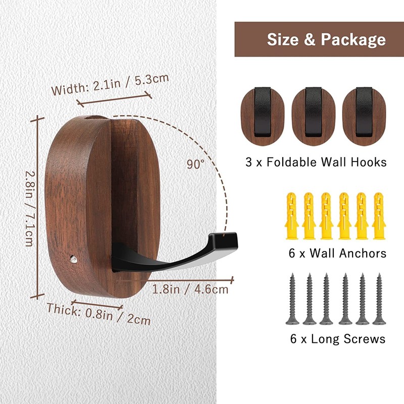 - 🏡Durable Wall Hooks for Hanging ⯈ Walnut wood base, metal hook, and wall mounted hardware make each coat hooks wall mounted hold up to 20 lbs, small but capable. Which ensures that the wall mounted coat rack won't pull away even under the weight of heavy winter jackets.