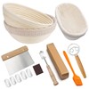 SZRWOPLO Bread Banneton Proofing Basket Set of 2, 9 Inch Round & 10 Oval Cane Sourdough Baskets with Lame + Dough Scraper Linen Liner Basting Brush for Making Baking Fermentation