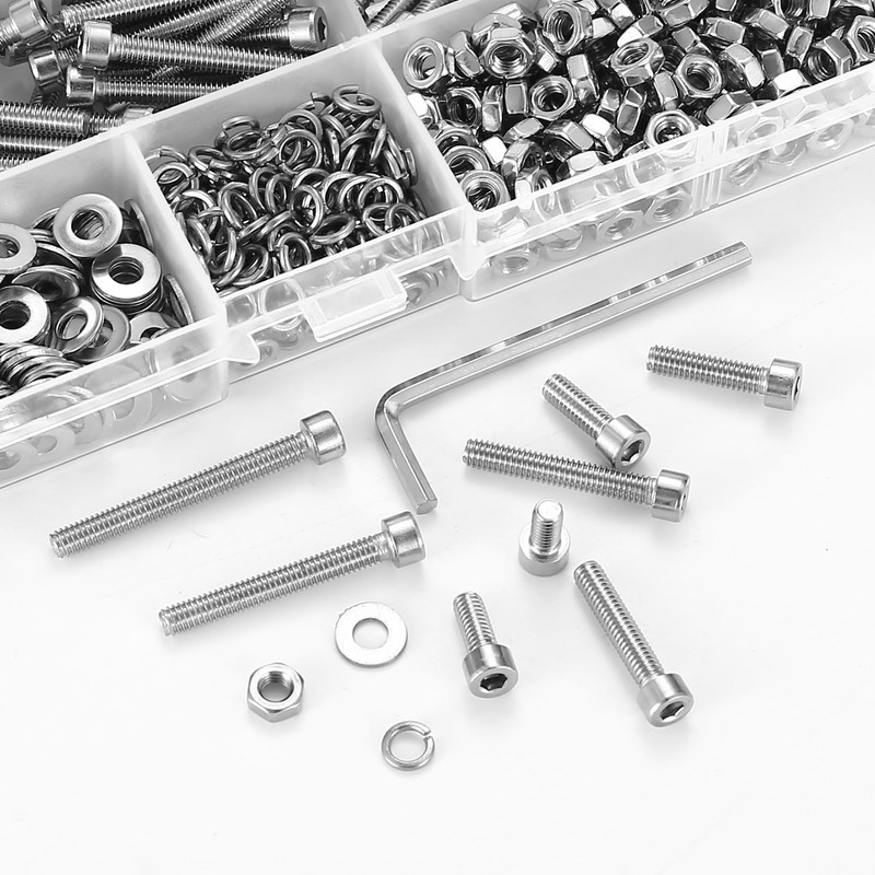 SZSLMY 800 Stk M4 Schrauben Set, Sechskantschrauben Muttern Set, Edelstahl Zylinderschrauben Innensechskant Schrauben mit Muttern und Unterlegscheiben Set, Maschinenschrauben Gewindeschrauben Sortiment