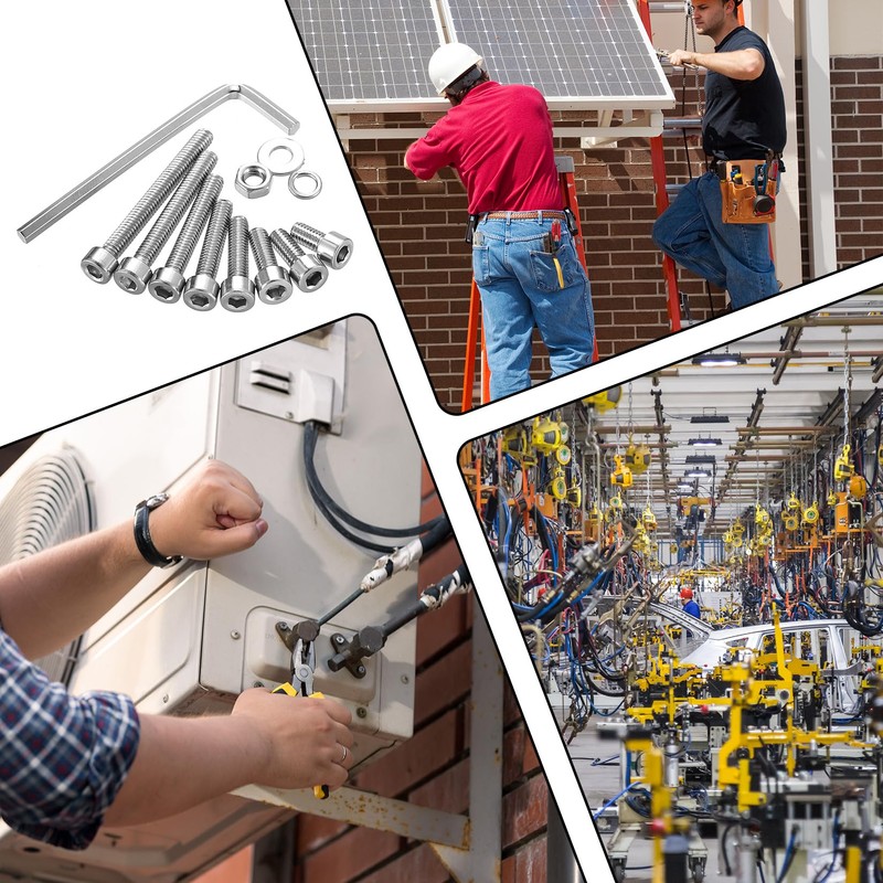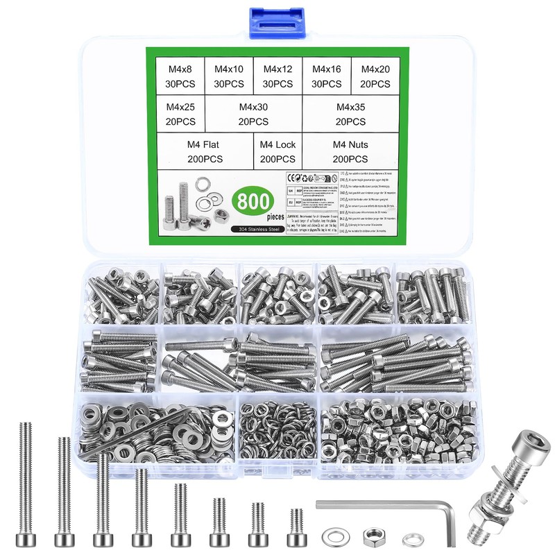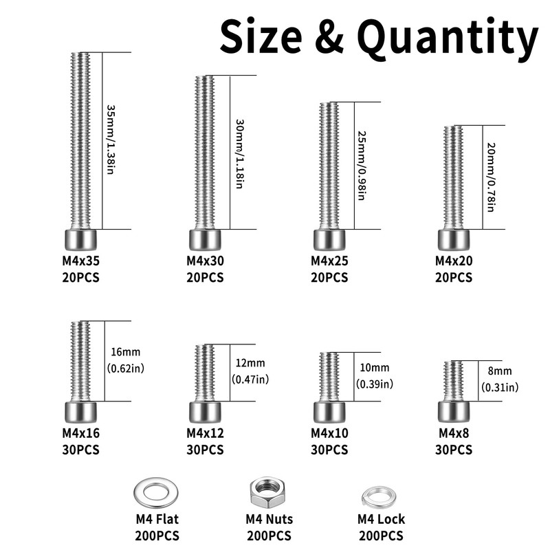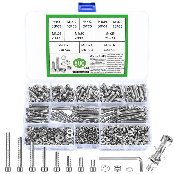 - Lieferumfang: Insgesamt 800 Stck, Gr??en umfassen M4 x 8 mm/10 mm/12 mm/16 mm/20 mm/25 mm/30 mm/35 mm, M4-Unterlegscheiben, M4-Sicherungsscheiben und M4-Sechskantmuttern, um den Anforderungen verschiedener Bereiche gerecht zu werden