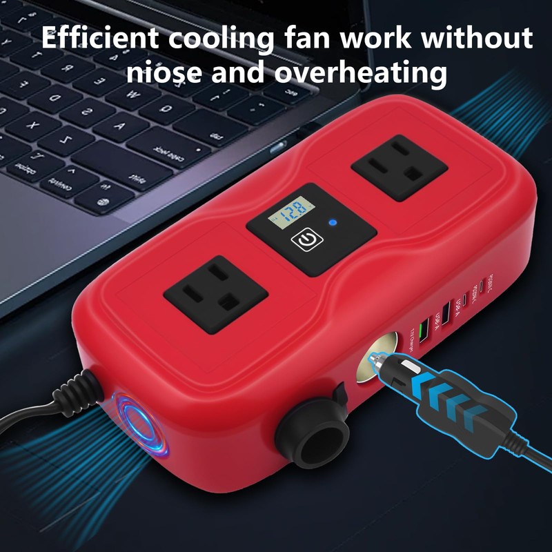 - Enhanced Cooling Systerm:This power inverter 12v to 110v is equipped with an intelligent heat dissipation function and can operate in an environment of -20 to 20 degrees Celsius. It not only provides you with a cool and comfortable environment but also protects the equipment from overheating during operation. The fan is very quiet when working and is very suitable for office work and rest.