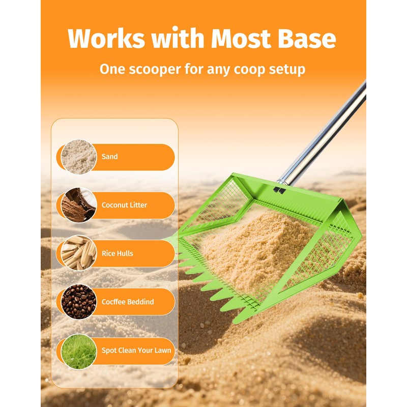- VERSATILE POOPER SCOOPER: More than just a chicken coop cleaning tool, the coop scoop easily adapts to different tasks. Use it as a chicken poop scooper for sand, a cat litter scoop, or even a sand sifter shovel for your garden or stable. A versatile tool for any farm, garden, or pet household.
