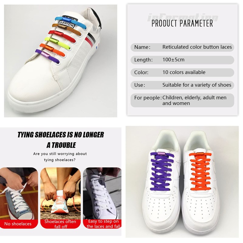 - Fashionable design: the shoelaces are designed with laceless color buckle mesh text, so you don't have to tie the shoelaces, and the shoelaces will not fall off and affect you on foot, and the colorful styles can match your shoes arbitrarily.