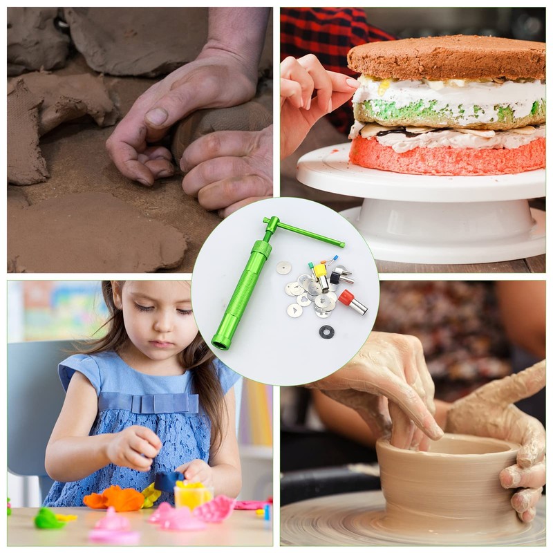 - Rotating Design: High quality clay gun tool, made of aluminum alloy to be lightweight and easy to carry anywhere you want. Multiple uses: Widely used tools for many craft projects such as polymer clay, ceramic clay, pastry, bread dough, sugar paste, fondant cake, icing cookies and more
