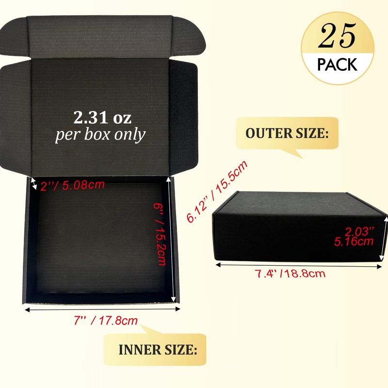 - Flat Packing: The 25 pack of small black box mailers are shipped to you in flat packing, which can save your storage space.