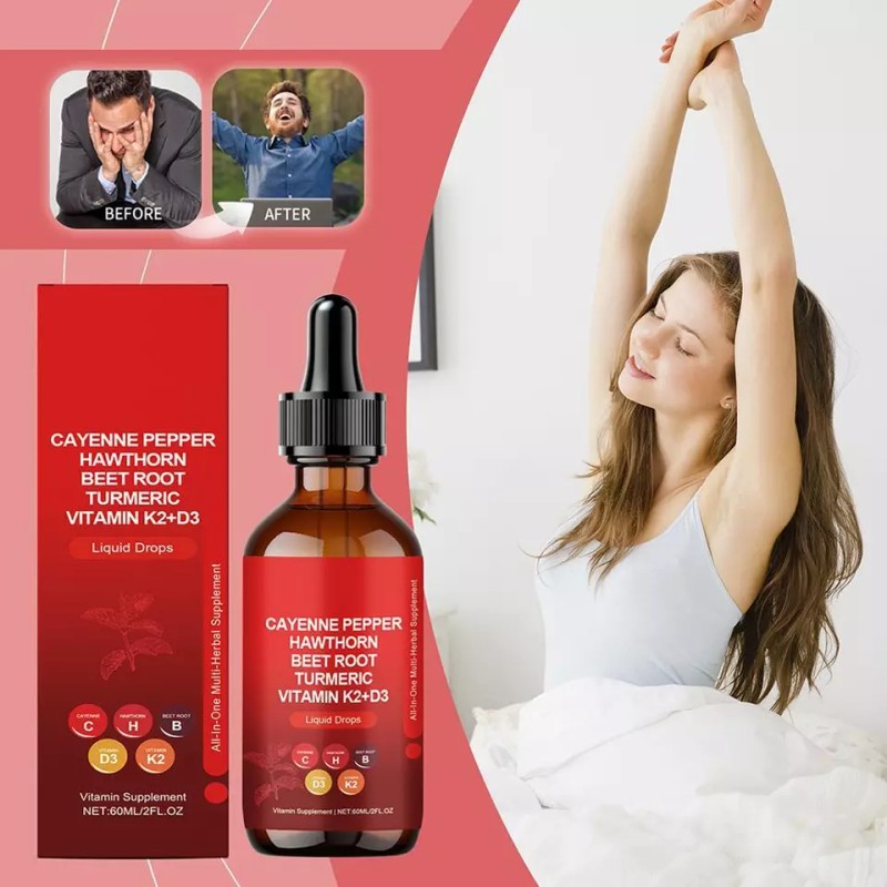 1-5X Callenne Pepper Hawthorn Beet Root Turmeric Vitamin K2+D3 Liquid Drops