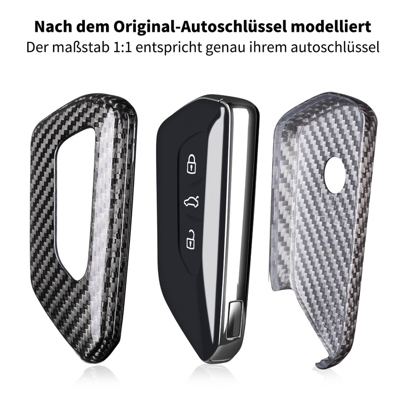 T-carbon Car Key Case Compatible with VW, Fibre Optic Key Case Compatible with VW Golf 8 Seat Leon Tarraco Ateca Skoda Octavia Cupra Formentor Born, Key Cover, Silver Black