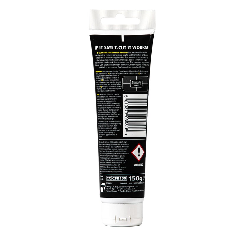 - T-Cut Color Fast Scratch remover removes scratches, scuffs, blemishes and adds colour in one easy application