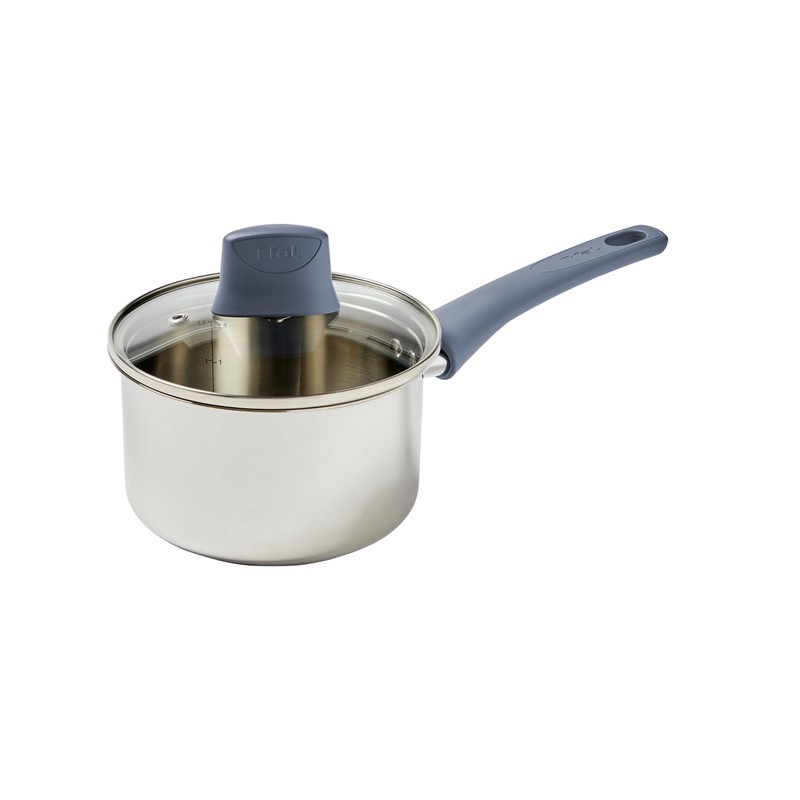 T-fal Essentials Stainless Steel Sauce Pan with Lid 3.2 Quart, All Cooktops Including Induction, Oven Safe 350F, Multipurpose Saucepan, Chef's Classic Pot,Measuring Marks, Dishwasher Safe Silver/Blue