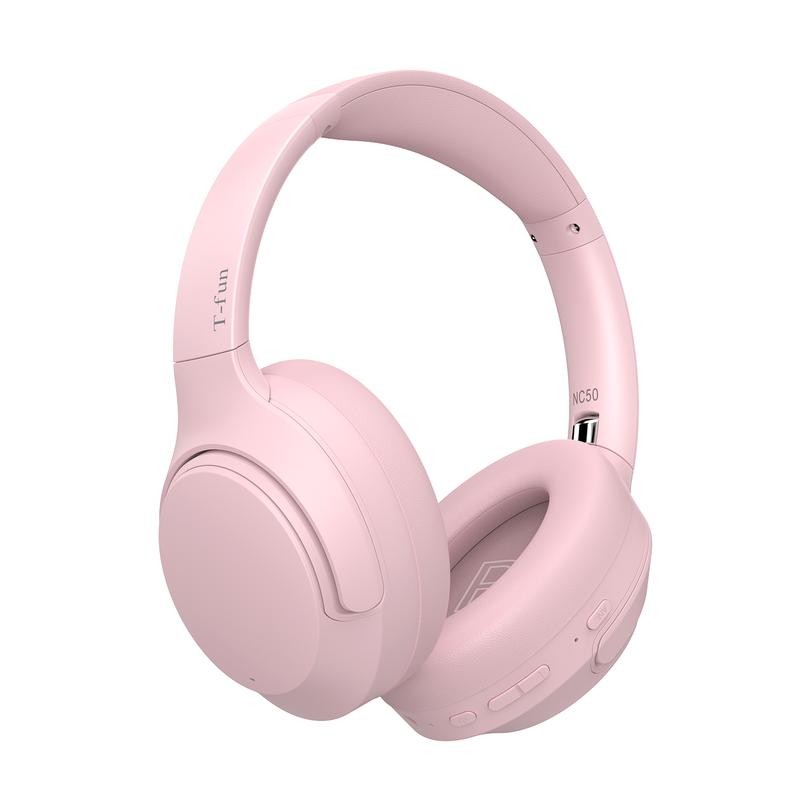 T-fun NC50 Hybrid Active Noise Cancelling Wireless Bluetooth 5.3 Headphones with Built-in Micro for Android & iPhones,Low Latency Gaming,Be aware of safety mode, Custom EQ - Color: Sakura Pink