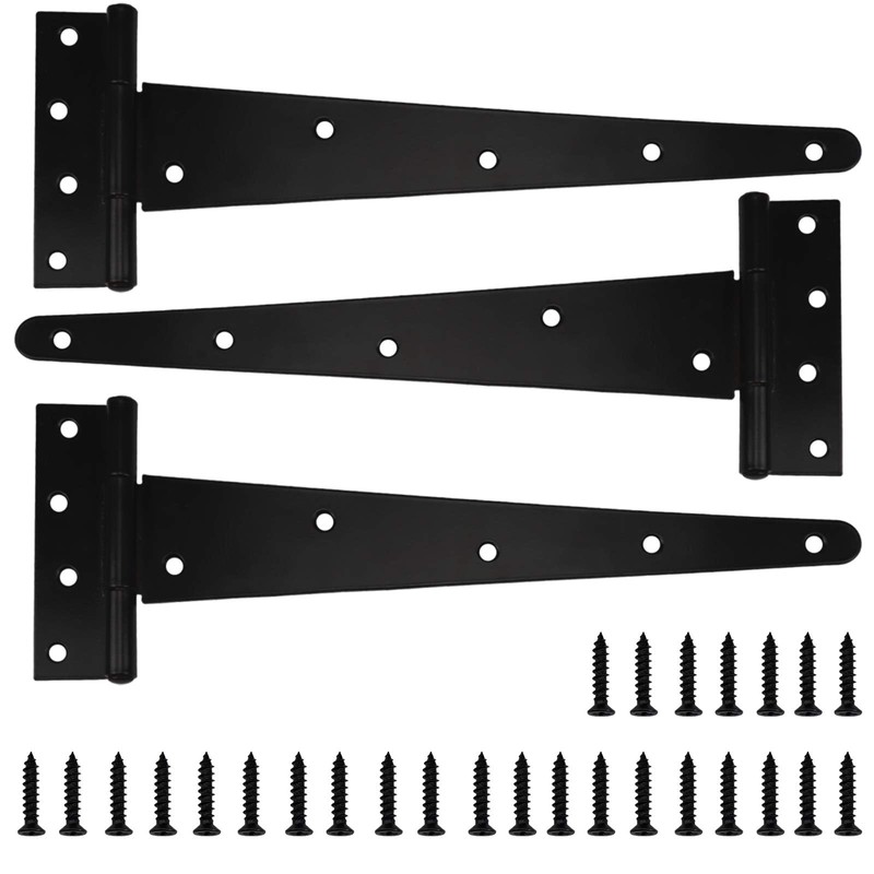 T-Hinge Black Shed Door Hinge Gate Hinge Rustproof Powder Coating Metal Tee Hinges with Weather Resistant for External Use On Gate Doors Barn Doors (12 in / 3 Pack)