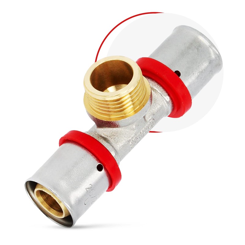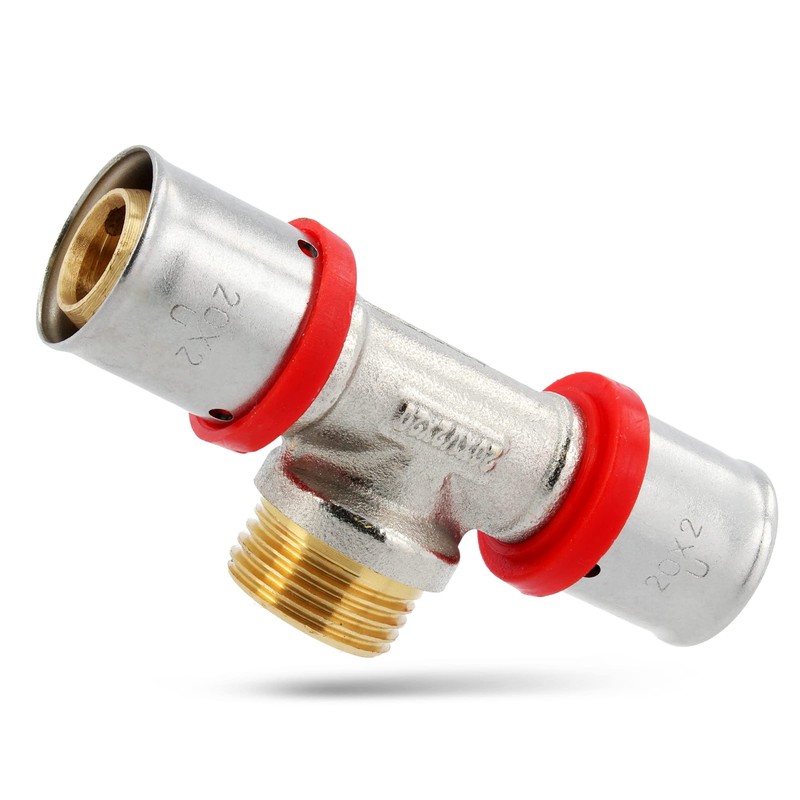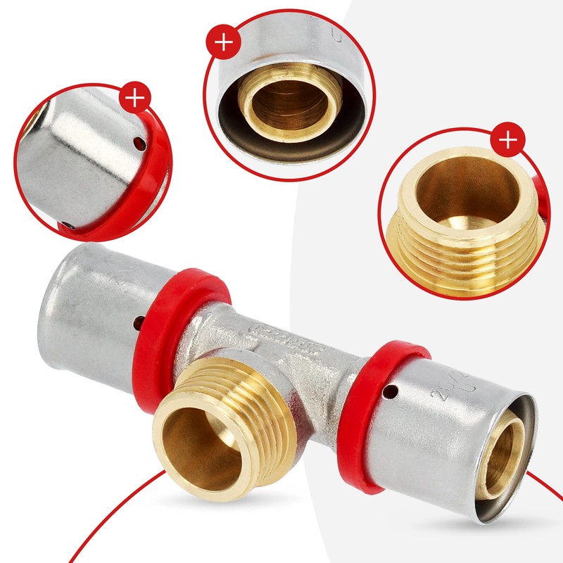 T-Piece PEX Press Fitting 20 x 1/2 Inch x 20 Male Thread with Sealing Rings O...