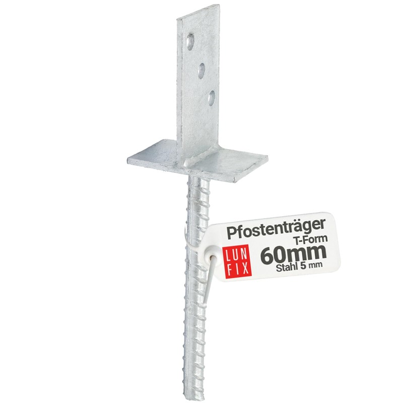• Basic information: you will receive post anchors for embedding in concrete, T-shape cushion 60 x 310, 1 piece, hot-dip galvanised.