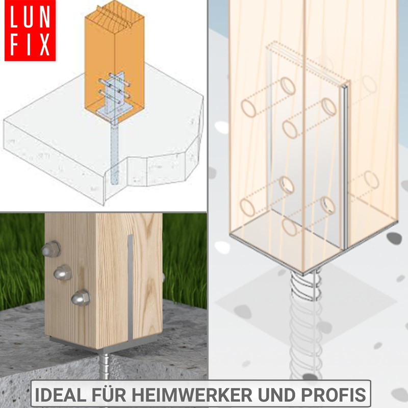Whether carport, patio canopy or garden shed - post support or post anchors are used in many places in the garden. These are elements that allow wooden posts or supports to be connected stably and permanently to the ground and thus create a load-bearing surface. There are post anchors in different designs: simple models are screwed to the ground or simply inserted into the ground. However, the embedding of post supports is more common. The main task of the post carrier is, of course, to anchor the wooden post firmly in the ground. It therefore ensures stability and as much as possible even under heavy loads. Wood also has the property of absorbing moisture and thus swelling or gamming. Of course, there are corresponding varnishes or impregnations, but the front side of a post is rather protected from moisture. In order to keep the moisture away on the floor, a post support is used. It covers the end of the post and prevents standing water or soil moisture from entering the wood. You see, fixing posts is only one of the many tasks of a post anchor. Buy the highest quality products from Lun Fix!