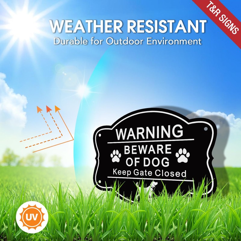 - Visible Warning: A perfect white on black set of colors design sends a clear and direct message to people that Beware of Dog Keep Gate Closed.