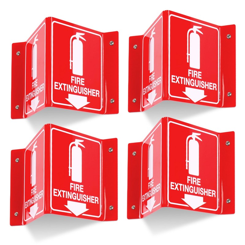 - Includes: Each package includes 4 pcs of Fire Extinguisher Signs, eight double-sided tapes and matching screws and expansion tubes.