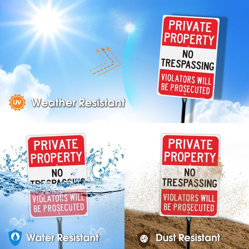 - Visible Warning: The clear lettering and deterrent words go straight to the point of the warning content "Private Property No Trespassing Violators Will Be Prosecuted".