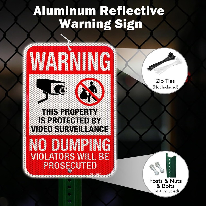 - Includes: Each package includes 1 No Dumping Signs, excluding attachment accessories such as screws, zip ties, nails ect.