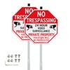 - Includes: Each package includes 2 No Trespassing Private Property Sign Video Surveillance Signs with 36" Stake, matching screws & wrench.