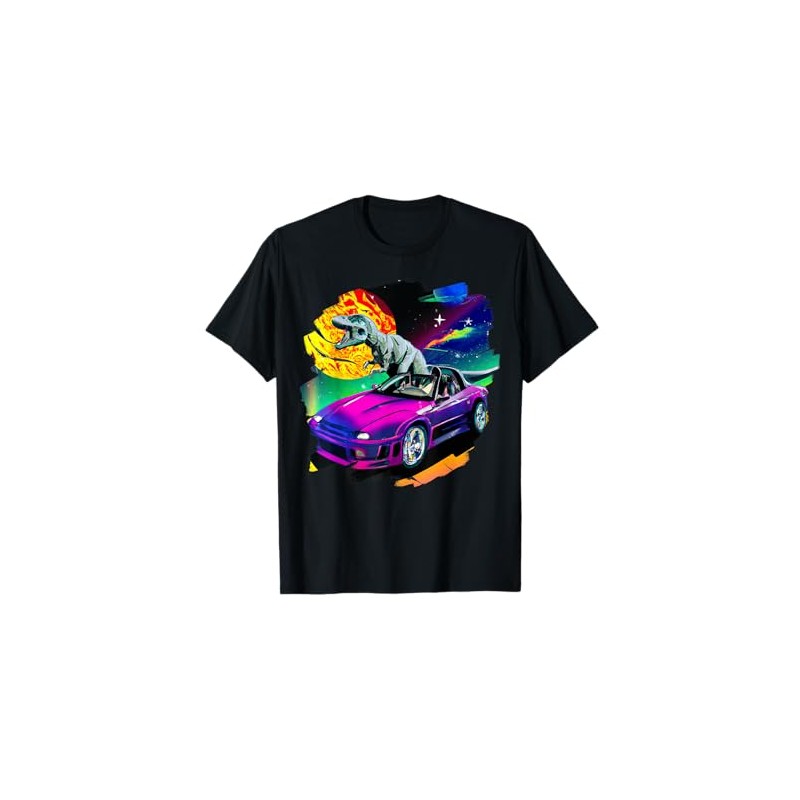 - This colorful synthwave vaporwave retro vintage 70s 80s 90s style design of a t rex driving a sports car driving in outer space with planets, stars, and galaxies in the background is perfect for those who love the tyrannosaurus rex and cool cars.