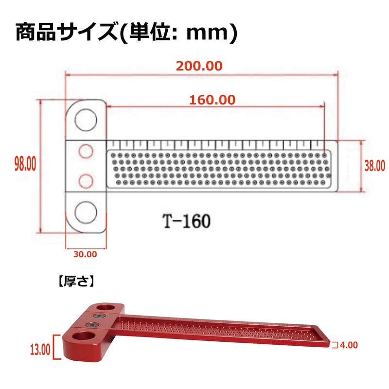 T-shaped SxP (T-160) T-Shaped Ruler, Woodworking, 0.04 inch (1 mm) Spacing, Injury Tool, Direct Marking, Aluminum Alloy,